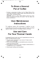 ME8TPB,PW,PBS,SW,SB,PWCAN_IB_Cr 12/1/04 1:49 PM Page 8 To Brew a Second Pot of Coffee • To brew a second pot of coffee, turn the Coffee Maker off for 15 minutes and allow it to cool. Empty used coffee grounds and repeat steps for brewing coffee. CAUTION: Failure to allow Coffee Maker to cool may cause water to overheat and spray hot steam. The hot steam can cause severe burns. User Maintenance Instructions This appliance requires little maintenance. It contains no user serviceable parts.