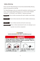 Table of Contents Safety Warning …………………………………………………………..…. 1 I. Safety Instructions ……………………………………………………….. 2 II. Parts and Components ……………………………………………………. 3 III. Control Functions ………………………………………………….…… 5 IV. Before Using the Generator …………………………………………..…… 8 V. Starting up the Generator ………………………………………………10 VI. Shutting Down the Generator …………………………………………10 VII. Using the Generator ………………………………………………..… 11 VIII. Service and Maintenance …………………………………….………16 IX.
