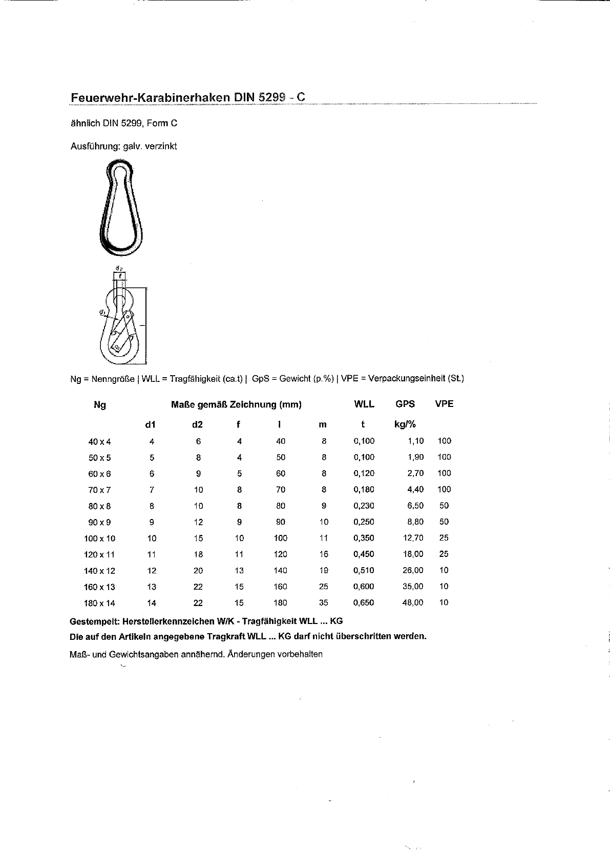 Fire-safety spring hook DIN 5299 140 mm x 12 mm 1 pc(s)