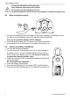 Topcom Babaytalker 2000 Blanda inte gamla batterier med nya. Förvara batterierna utom räckhåll för små barn. Kortslut inte eller kasta i öppen eld. Avlägsna batterierna om apparaten inte ska användas under en längre period. 4.2 Strömförsörjning för babyenheten 1. Anslut strömadapterns lilla kontakt till babyenhetens strömanslutning och koppla in den andra änden av adapterkabeln i eluttaget (230 V/50 Hz). Använd endast den medföljande adaptern (6 V DC/200 mA). 2. Tryck på strömbrytarknappen (14).
