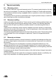 Topcom Babytalker 2000 4.4 Forældredelens strømforsyning DANSK 1. Sæt adapterkablet i lysnetkontakten (230V/50Hz). Brug kun den medfølgende adapter (6V DC / 300 mA). 2. Sæt forældredelen i opladeren. Det røde opladningslys tændes. 3. Det tager ca. 13 timer at oplade enheden. 4. Tryk på Til/Fra-knappen (2). Nu tændes strømindikatoren (7). 5. Tryk på Til/Fra-knappen (2), og hold den nede et par sekunder for at slukke for ældredelen. Når batteriet er ved at være tømt, blinker strømindikatoren (7). 4.