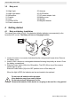 Topcom Baby Viewer 2500 2. Vrid knappen On/Off/Volym (15) moturs för att slå på enheten och ändra till önskad ljudnivå. Vrid knappen On/Off/Volym (15) medurs för att stänga av föräldraenheten. När babyenheten och föräldraenheten har slagits på måste displayen på föräldraenheten visa videon från babyenheten. 5 5.1 • • Använd Baby Viewer 2500 Fininställning Placera kameran på en lämplig plats, rikta kameralinsen mot observationsområdet. Justera vinkeln genom att rotera babyenheten.