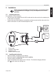 Sologic B931 5 Installation 5.1 ENGLISH Before you use the telephone for the first time, you must first make sure the batteries are charged. If not, the telephone will not work optimally. Installing the base For installation, do the following: • Plug one end of the adaptor into the 230V outlet and the other end into the adapter jack on the bottom of the base. • Connect one end of the telephone cord with the wall phone jack and the other end to the bottom of the base. Use the included telephone cord.