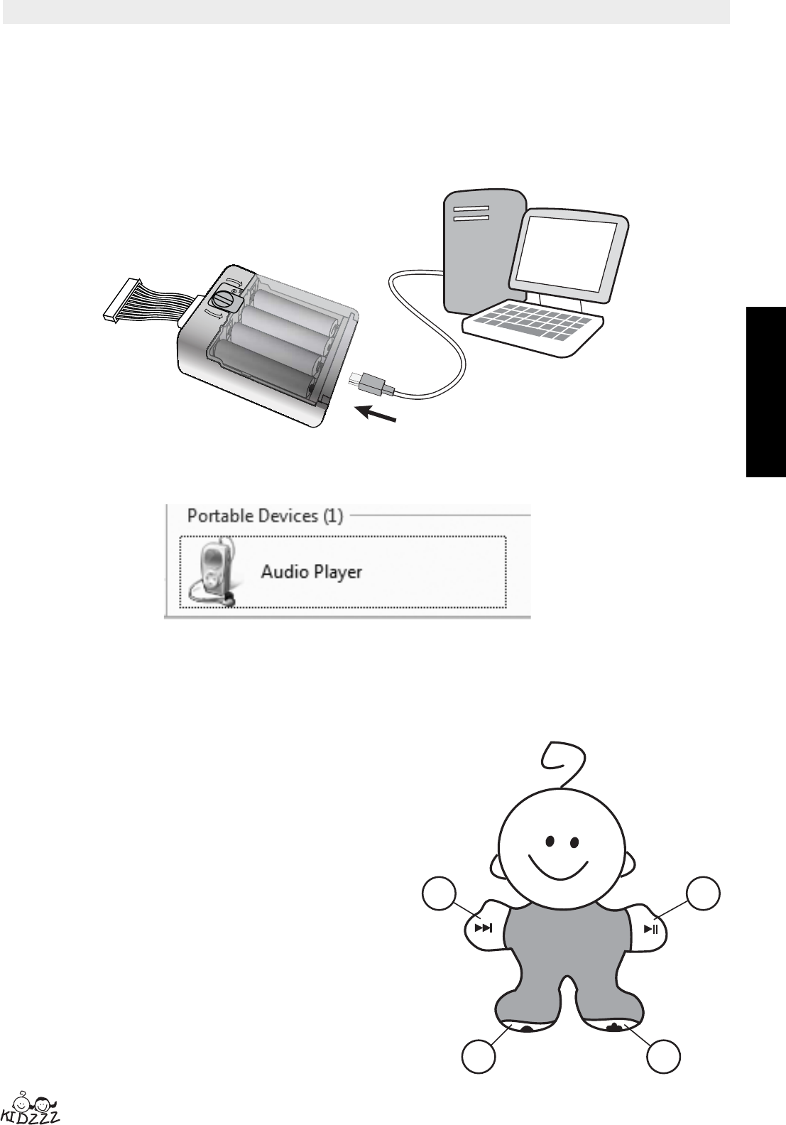 • Branchez une extrémité du câble USB fourni au mini port USB sur votre unité MP3 et