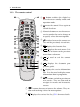 4 Introduction 1.2.2 The remote control 1 button switches the digital receiver between standby mode and operation mode. 2 mutes the sound. Press again to switch it back on. 3 Numeric buttons are used to enter a service number for service change or to specify values for menu options. 4 switches between the current service and the previously viewed one. 5 6 FAV displays the favourite lists. MENU displays the main menu. It is also used to return to the previous menu from a submenu.