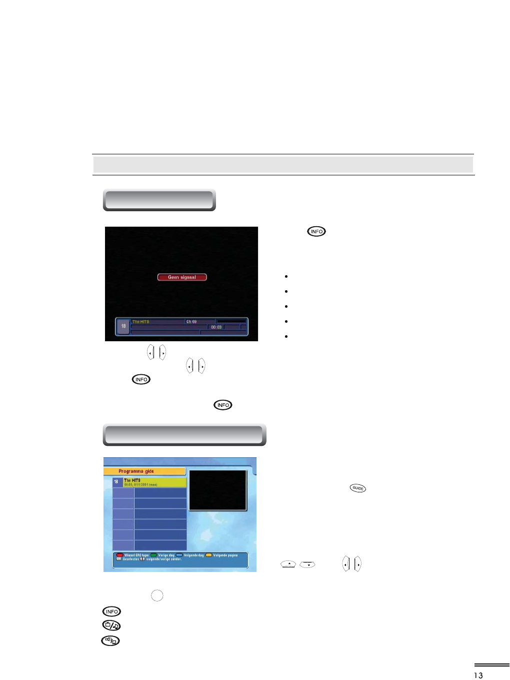 Door de , toetsen te gebruiken kunt u de EPG van het volgende programma zien. Door