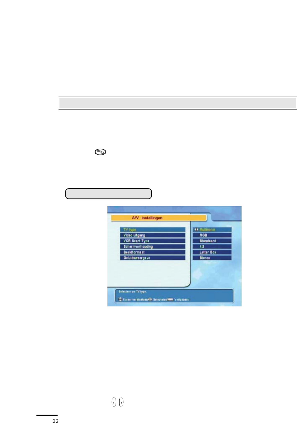 Uw STB heeft vele configuratiemogelijkheden voor video en Audio, welke in dit menu ingesteld