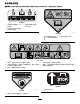 安全和指示标签 重要事项 任何潜在危险区附近均贴有操作员清晰可见的安全标贴和说明。更换受损或丢失的标贴。 decal130-8322 130-8322 1. 仅使用酒精含量低于 10% 的燃料。 2. 阅读 操作员手册 了解有关 燃油的更多信息。 3. 不要使用酒精含量高于 10% 的燃料。 decal111-9826 111–9826 1. 手脚切割/截肢危险 滚刀 组——保持手脚远离活动 件。 2. 请阅读 操作员手册 。 decal111-5393 111-5393 1. 警告 — 接受产品培训阅读 《操作员手册》 。 4. 物体抛掷危险 让旁观者远离机器。 2. 手脚切削割裂危险、剪草机刀片维修机器前、断开火花塞电 线切勿安装金属切削零件。 5. 警告 — 切勿接触热表面确保防护装置到位远离活动件始终 确保防护装置到位。 3. 警告 — 佩戴眼部和听力防护装置。 g017410 g017410 H295159 1. decal94-8072 94-8072 1.