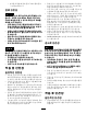 문제해결 문제 엔진이 시동되지 않음. 가능한 원인 1. 점화 플러그에 선이 연결되지 않았습 니다. 1. 점화 플러그에 선을 연결합니다. 2. 연료 캡 통기구의 구멍이 막혀 있습니 다. 3. 점화 플러그가 흠이 많이 나 있거나 더 럽거나 간극이 정확하지 않습니다. 2. 연료 캡 통기구의 구멍을 청소하거나 연료 캡을 교체합니다. 3. 점화 플러그를 점검하고 필요하면 간 극을 조정합니다. 흠이 많이 나 있거 나, 더럽거나, 금이 간 점화 플러그는 교체합니다. 4. 연료 탱크를 비우고/비우거나 새 휘발 유로 채웁니다. 문제가 계속되면 공인 서비스 딜러에 연락하십시오. 4. 연료 탱크가 비었거나 연료 시스템에 오래된 연료가 들어 있습니다. 엔진을 시동하기 어렵거나 힘이 떨어짐. 1. 연료 캡 통기구의 구멍이 막혀 있습니 다. 1. 연료 캡 통기구의 구멍을 청소하거나 연료 캡을 교체합니다. 2. 에어 필터 소자가 더럽고 공기 흐름을 막습니다. 3. 장비 하우징 밑에 예지물과 잔해물이 들어갔습니다.