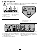 안전 및 교육용 전사지 안전 지침 전사지는 쉽게 볼 수 있으며 위험이 발생할 가능성이 있는 영역 근처에 배치되어 있 습니다. 손상되거나 유실된 전사지는 전부 교체하십시오. decal130-8322 130-8322 체적 기준 알코올 함량이 10% 미만인 연료만 사용 하십시오. 2. 연료에 대한 자세한 내용 은 사용 설명서 를 읽어보 십시오. 1. 3. 체적 기준 알코올 함량이 10% 이상인 연료는 사용 하지 마십시오. decal111-9826 111–9826 1. 손이나 발 절단/잘림 위험, 커팅 유닛-손이나 발이 움 직이는 부품에 가까이 가 지 않게 하십시오. 2. 사용 설명서 를 읽으십시 오. decal111-5393 111-5393 경고—제품에 대한 교육을 받고 사용 설명서 를 읽으십시오. 4. 튀는 물체 위험; 주변 사람이 장비에서 떨어지게 하십시오.