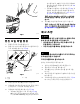 매번 사용 후 경고 장비 하우징 아래에서 물질이 튀어나올 수 있습 니다. • 보안경을 착용하십시오. • 핸들 뒤)에 에 계십시오. 운전 위치(핸 • 주변에 사람이 없도록 하십시오. 1. 계량봉을 내린 상태에서 장비를 옆으로 기울 입니다. 2. 솔이나 압축 공기를 사용하여 배기 가드, 상단 덮 개 및 데크 주위의 잔디와 잔해물을 제거합니다.