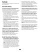 Safety • Wear appropriate clothing, including eye protection; substantial, slip-resistant footwear; long pants, and hearing protection. Tie back long hair and do not wear loose jewelry. This machine has been designed in accordance with EN ISO 5395:2013. • Inspect the area where the equipment is to be used and remove all objects, such as rocks, toys, and wire, that the machine can throw.