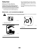 Säkerhet • Sänk ned klippenheterna till marken, koppla in parkeringsbromsen, stäng av motorn och ta ut nyckeln ur tändningslåset när maskinen lämnas utan uppsikt. Maskinen har utformats i enlighet med specifikationerna i SS-EN ISO 5395:2013. • Se till att klippenheterna är säkra att använda Felaktig användning eller felaktigt underhåll av utrustningen kan leda till personskador eller dödsfall. Följ nedanstående säkerhetsföreskrifter för att minska denna risk för skador eller dödsfall.
