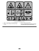 111-8165 CT2240 (modell 30654) 1. Vältrisk – sväng försiktigt och kör sakta uppför backar. 3. Varning – använd alltid säkerhetsbälte. 2. Vältrisk – kör inte i sluttningar vars lutning överstiger 17 grader. 4. Varning – läs bruksanvisningen. Ta ut nyckeln ur tändningen innan du utför underhåll. Risk för utslungade föremål; se till att kringstående håller sig på avstånd från maskinen.