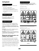 De geluidsdruk werd bepaald volgens de procedures in EN 836. LT3340 Model 30657 Onderdeelnr. 111-1530 Model LT3340 Maximale hellingshoek 16 graden Deze machine oefent een geluidsdruk van 80 dBA uit op het gehoor van de bestuurder (met een onzekerheidswaarde (K) van 1 dBA). De geluidsdruk werd bepaald volgens de procedures in EN 836. Model GM3400 Deze machine oefent een geluidsdruk van 88 dBA uit op het gehoor van de bestuurder (met een onzekerheidswaarde (K) van 1 dBA).
