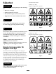 Säkerhet CT2120 modell 30655 Artikelnr 111-5960 VARNING Högsta lutningsvinkel 13 grader Innan arbete på maskinen påbörjas är det väsentligt att: • Motorn är avstängd. • Parkeringsbromsen är ansatt. • Det inte finns något tryck i hydraulsystemet. • Klippenheterna är helt nedsänkta till marken. VARNING Förhindra olyckor När du utför underhållsåtgärder ska du alltid använda lämplig personlig skyddsutrustning.