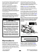 W czasie pracy – – – – Bezpieczeństwo w czasie pracy Ogólne zasady bezpieczeństwa • Właściciel/operator może zapobiegać wypadkom i • • • • • • • • • • • • • • • jest odpowiedzialny za obrażenia ciała innych osób i uszkodzenia mienia wynikłe wskutek wypadków. Noś odpowiednią odzież, w tym ochronę oczu, długie spodnie, pełne obuwie robocze z podeszwą antypoślizgową i ochronniki słuchu. Zwiąż włosy, jeśli są długie, i nie noś luźnej odzieży ani zwisającej biżuterii.