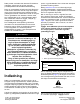 13 14 Montering af udstødningsværnet Montering af CE-mærkaterne CE-maskiner CE-maskiner Dele, der skal bruges til dette trin: Dele, der skal bruges til dette trin: 1 Udstødningsværn 1 Mærkat med produktionsår 4 Selvskærende skrue 1 CE-mærkat (delnr. 133-8095) Hældningsfaremærkat (121-3598) Fremgangsmåde 1. Påsætning af mærkaten med produktionsår og CE-mærkaten Sæt udstødningsværnet rundt om lydpotten, så monteringshullerne flugter med hullerne i stellet (Figur 36). 1.