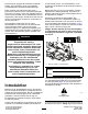 Säkerhet • Kör endast maskinen om skydd och andra Maskinen har utformats i enlighet med SS-EN ISO 5395 (när du har slutfört monteringsförfarandet) och ANSI B71.4-2017. • Håll kringstående och barn borta från säkerhetsanordningar sitter på plats och fungerar. arbetsområdet. Låt aldrig barn använda maskinen. • Stäng av motorn, ta ut nyckeln (i förekommande fall) och vänta tills alla rörliga delar har stannat innan du kliver ur förarsätet.