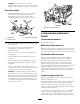Kuva 4 Kuva 3 1. Takasuojus 2. Kantaruuvi 1. Leikkuuyksikön tukiteline 4 3 Vastapainojen asennus Takasuojuksen säätö Mitään osia ei tarvita Mitään osia ei tarvita Ohjeet Ohjeet Kaikkien toimitettujen leikkuuyksiköiden vasempaan päähän on asennettu vastapaino. Määritä seuraavan kaavion avulla vastapainojen ja kelamoottorien sijainti. Useimmissa olosuhteissa paras levitys saadaan, kun takasuojus on kiinni (eteen heitto). Raskaissa tai märissä olosuhteissa takasuojusta voidaan pitää auki.