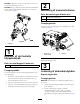 Bemærk: Maskinens venstre og højre side er som set fra den normale betjeningsposition. 2 Bemærk: Brug støttebenet (leveres med traktionsenheden), når det lodrette klipperedskab skal tippes for at blotte de lodrette knive (Figur 2). Montering af transportrullerne Dele, der skal bruges til dette trin: 2 Montering af transportruller 2 Låseclips Fremgangsmåde Fastgør et transportrullebeslag på hver sideplades stift med en låseclips (Figur 3). Figur 2 1. Støtteben 1 Figur 3 1.
