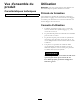 Vue d'ensemble du produit Utilisation Remarque: Les côtés gauche et droit de la machine sont déterminés d'après la position d'utilisation normale. Caractéristiques techniques Poids net Période de formation 63 kg Avant d'utiliser les cylindres de verticutting, évaluez leur performance au réglage voulu. Choisissez une zone dégagée et inutilisée pour déterminer si les résultats recherchés sont obtenus. Réglez selon les besoins. Conseils d'utilisation 1.
