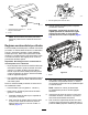 Întreţinere Utilizarea suportului pentru înclinarea unităii de tăiere Oricând unitatea de tăiere trebuie înclinată pentru a expune contracuitul/cilindrul, proptii spatele unităii de tăiere cu ajutorul suportului (furnizat alături de unitatea de traciune), pentru a asigura faptul că piuliele de la capătul posterior al uruburilor de reglare pentru bara de cadru nu se află pe suprafaa de lucru (Figura 23). g191601 Figura 24 Gresoare pe partea motorului de cilindru 1.