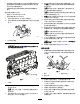 维 护 HD 双 点 调 节 器 DPA 4. 拆除所有零件请参阅 HD DPA 套件 安装说明 和 图 35 。 将一个波形垫圈安装到调节器轴上然后将调节器轴滑 入滚刀组机架中的凸缘轴套内图 35。 5. 使用扁平垫圈和锁紧螺母固定调节器轴图 35。 2. 将防粘剂涂抹到滚刀组中心机架图 35的轴套区内侧。 6. 上紧锁紧螺母扭矩至 2027N·m。 3. 将凸缘轴套上的键与机架的槽对准然后安装轴套图 35 。 1. 注 意 底刀架调节器轴采用左旋螺纹。 g016926 图 35 1. 轴调节器 4. 在此处涂抹防粘剂。 7. 在此处涂抹防粘剂。 10. 压缩弹簧 2. 波形垫圈 5. 扁平垫圈 8. 底刀架调节螺丝 11. 弹簧加压螺母 3. 凸缘轴套 6. 锁紧螺母 9. 硬化垫圈 7. 将防粘剂涂抹到安装在调节器轴中的底刀架调节器螺 丝的螺纹上。 8. 将底刀架调节器螺丝旋入调节器轴。 9. 将硬化垫圈、弹簧和弹簧加压螺母宽松地安装到调 节器螺丝上。 10.