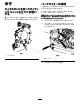 ブレードをシャフトから取り外す バ ー チ カ ッ タ の ブ レ ー ド を 取 り 1. バーチカッターシャフトの一方の端ワッシャが 1 枚 付ける とナットが 1 個ついている側を万力に固定する。 2. シャフトの反対側についているナットを左回りに回 し、ナットを取り外す。 注意 1. リール刃を組み付ける図 14。 2. 大きいスペーサを取り付ける。 3. 組み付け時にブレードを裏返しにしないように注 意すること。 ブレードは非常に鋭利であり、バリなどがつ いていて手を怪我する恐れがある。 注 裏返しにした鋭利なブレードとしない丸くなっ たブレードが混ざり合っていると、仕上がりが悪く なりますから注意してください。 シャフトからブレードを外すときには安全に 十分注意すること。 3. 4.