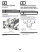 5 6 Регулировка заднего щитка Регулировка скребков роликов Детали не требуются Детали не требуются Процедура Процедура 1. Примечание: В ходе осуществления работ на травяном покрове с большим количеством мусора или соломы, поднимите задний щиток выброса, чтобы облегчить выброс мусора из барабана. 1. Ослабьте гайки с буртиками, которые крепят скребки роликов (Рисунок 9). Ослабьте болты оси поворота щитка (Рисунок 8). g012271 g196703 Рисунок 9 Рисунок 8 1. Задний щиток 2. 2.