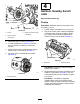 5 Seřízení zadního travního krytu Nejsou potřeba žádné díly Postup Poznámka: Při práci na travnaté ploše, kde se nachází nadměrné množství nečistot nebo neobvykle těžká plsť, otevřete kryt zadního vyhazovacího otvoru. Tímto otvorem budou z vřetena odhazovány nečistoty. 1. Povolte šrouby na otočném čepu travního krytu (Obrázek 8). g012271 Obrázek 9 1. Stírač předního válce 3. Přepravní kolečko 2. Stírač zadního válce 4. Drátová závlačka 2.