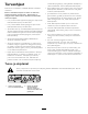 Turvaohjeet turvakenkiä ja kypärää, ja jotkin paikalliset määräykset ja vakuutussäännökset saattavat edellyttää niiden käyttöä. • Poista kaikki roskat ja muut esineet, jotka voisivat tarttua Tämä kone on suunniteltu standardin EN ISO 5395:2013 mukaisesti. leikkuuyksikön kelateriin ja sinkoutua niistä. Älä päästä sivullisia työskentelyalueelle. Koneen virheellinen käyttö tai huolto voi aiheuttaa loukkaantumisen tai kuoleman.