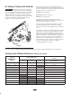 Adjusting Cut–Off Bar The Cut–Off bar is designed to keep the gap between the reel and the Cut–Off minimal to insure grass clippings discharge cleanly from reel area. Note: The gap between the Cut–Off bar and reel will increase as: 1) the reel wears, 2) reel is sharpened by grinding, or 3) if the front grass shield is adjusted. 1 1. Loosen screws securing Cut–Off bar (Fig. 4). Insert 0.060” (2 mm) feeler gauge between top of reel and Cut–Off bar. Figure 3 1.