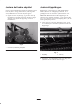 Justera det bakre skyddet Justera klippstången Under de flesta förhållanden uppnås bäst spridning när det bakre skyddet är stängt (främre utkast). Vid tunga eller våta förhållanden kan det bakre skyddet öppnas. Klippstången är utformad för att hålla mellanrummet mellan cylindern och avklippningen minimal, så att gräsklippet kastas ut och lämnar cylinderområdet rent. 1. Öppna det bakre skyddet (fig.