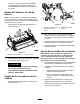 molinete y variará el ajuste de profundidad. Compruebe periódicamente el ajuste de profundidad para confirmar que el ajuste sea el correcto. Ajuste del deflector de hierba trasero Nota: Cuando trabaje en condiciones de césped con muchos residuos o fieltro, abra el deflector de descarga trasero para permitir que los residuos sean expulsados por el molinete. g028404 1. Afloje los pernos del pivote del deflector de hierba (Figura 10). Figura 11 1. Rascador del rodillo frontal 3. Rodillo de transporte 2.