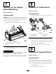 7 8 Justering af den bageste græsafskærmning Justering af rulleskraberne Kræver ingen dele Kræver ingen dele Fremgangsmåde Fremgangsmåde 1. Løsn flangemøtrikkerne, der holder rulleskraberne fast (Figur 11). Bemærk: Når der arbejdes på plæner, hvor der kan ligge meget affald, eller hvor der kan forekomme belastningstunge strå, skal den bageste udblæsningsafskærmning åbnes, så affaldet kan slynges ud af knivcylinderen. 1. Løsn boltene på græsafskærmningens drejetap (Figur 10). Figur 11 1.