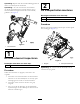 Opmerking: Bepaal vanuit de normale bedieningspositie de linker- en rechterzijde van de machine. 2 Opmerking: Als u de verticuteerset moet kantelen om bij de verticuteermessen te kunnen komen, moet u de kick-standaard (meegeleverd met de tractie-eenheid) gebruiken; zie Figuur 2. De transportrollen monteren Benodigde onderdelen voor deze stap: 2 Transportrolconstructie 2 Borgpen Procedure Bevestig een transportrolbeugel aan de pen van elke zijplaat met een borgpen (Figuur 3). Figuur 2 1.