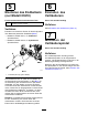 2 3 Montieren der Transportrollen Anbringung von O-Ring und Schmiernippel Für diesen Arbeitsschritt erforderliche Teile: Für diesen Arbeitsschritt erforderliche Teile: 2 Transportrollen 1 O-Ring 2 Splint 1 Gerader Schmiernippel Verfahren Verfahren Befestigen Sie eine Transportrollenhalterung mit einem Splint an jedem Seitenplattenbolzen (Bild 3). Bringen Sie die Schmiernippel an der Spindelmotorseite des Vertikutierers an.