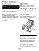 Product Overview Operation Specifications Model Number Weight 03621 51 kg (112 lb) 03623 52 kg (116 lb) Note: Determine the left and right sides of the machine from the normal operating position. Adjusting the Cutting Unit Attachments/Accessories Adjusting the Rear Shield A selection of Toro approved attachments and accessories is available for use with the machine to enhance and expand its capabilities. Contact your Authorized Service Dealer or authorized Toro distributor or go to www.Toro.