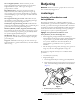 Justering af klippehøjden Bemærk: Hvis du ønsker klippehøjder på over 2,54 cm, skal sættet til høj klippehøjde monteres. 1. Løsn de låsemøtrikker, der fastholder klippehøjdebeslagene på klippeenhedens sideplader (Figur 15). Figur 17 Vigtigt: Når indstillingen er korrekt, vil bag- og frontrullerne berøre målestangen, og skruen vil ligge pænt tæt op ad bundkniven. Således sikres det, at klippehøjden er den samme i begge ender af bundkniven. Figur 15 1. Justeringsskrue 6.
