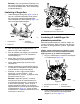 Vedligeholdelse Brug af støttebenet ved vipning af klippeenheden Når det er nødvendigt at vippe klippeenheden, så bundkniven/knivcylinderen kommer til syne, skal det bageste af klippeenheden understøttes med støttebenet (leveres med traktionsenheden) for at sikre, at møtrikkerne på den bageste del af bundtværstangens justeringsskruer ikke hviler på arbejdsfladen (Figur 21). g027174 Figur 22 Smørenippelplaceringer på knivcylindermotorens side.
