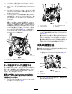 各部品が良好な状態にあり、ボルトナット類が十分 にしまっているか常に点検してください。読めなく なったステッカーは貼り替えてください。 • レータや周囲の人間に多大の危険を及ぼし、最悪の場 合には死亡事故となる。 アクセサリ、アタッチメント、交換部品は、必ずトロ の純正品をお使いください。 • 刈り込みブレードについての 安全事項 磨耗の進んだブレードや破損したブレードは、回転中 にちぎれて飛び出す場合があり、これが起こるとオペ • ブレードが磨耗や破損していないか定期的に点検 すること。 • ブレードを点検する時には安全に十分注意してくだ さい。ブレードをウェスでくるむか、安全手袋をは め、十分に注意して取り扱ってください。ブレードは 研磨または交換のみ行い、たたいて修復したり溶 接したりしないでください。 • 複数のブレードを持つ機械では、つのブレードを 回転させると他も回転する場合がありますから注意 してください。 安全ラベルと指示ラベル 危険な部分の近くには、見やすい位置に安全ラベルや指示ラベルを貼付しています。破損し たりはがれたりした場合は新しいラベルを貼付してください。
