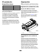 El producto Operación Especificaciones Nota: Los lados derecho e izquierdo de la máquina se determinan desde la posición normal del operador. Unidad de corte Peso 03638 54 kg 03639 54 kg 03641 55 kg Ajuste de la unidad de corte Ajuste del deflector trasero En la mayoría de las condiciones, puede obtener la mejor dispersión de recortes con el deflector trasero cerrado (descarga delantera). En condiciones pesadas o de mucha humedad, puede abrir el deflector trasero.