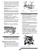 g027176 Figure 31 1. Boulon de barre d'appui 3. Rondelle acier 2. Écrou 4. Rondelle en nylon Assemblage de la barre d'appui 1. Montez la barre d'appui en positionnant les languettes de montage entre la rondelle et la vis de réglage de la barre d'appui. 2. Fixez la barre d'appui sur chaque plaque latérale avec les boulons (munis d'écrous) et 6 rondelles. Remarque: Placez une rondelle en nylon de chaque côté du bossage de la plaque latérale.