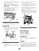 예 고 (HOC) 조 정 참고: 예고가 2.54cm 이상인 경우 고예고 키트를 장 착해야 합니다. 1. 예고 암을 커팅 유닛 측면 플레이트에 고정하는 록너트를 풉니다(그림15). g027172 그 림 17 g027171 그 림 15 1. 2. 2. 나사 조정 록너트 3. 예고 암 6. 롤러 전체가 베드나이프와 평행이 되도록 롤러 의 양끝을 조정합니다. 중요: 제대로 설정하면 후방 롤러와 전방 롤러 가 게이지 바에 닿고 나사가 베드나이프에 딱 맞 게 고정됩니다. 그러면 베드나이프 양쪽 끝의 예 고가 같아집니다. 게이지 바의 너트를 풀고(그림16) 조정 나사를 원하는 예고로 설정합니다. 7. 너트를 조여 조정치를 고정합니다. 참고:너트를 과도하게 조이지 마십시오. 와셔에 유격이 생기지 않도록 충분히 조이십시오. g003327 그 림 16 1. 게이지 바 4. 2. 3. 높이 조정 나사 너트 5. 그루머 예고를 설정하는 데 사용되는 구멍 사용되지 않는 구멍 3.
