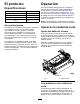 El producto Operación Especificaciones Consulte el Manual del operador de la unidad de tracción para obtener instrucciones detalladas de funcionamiento. Incline la unidad de corte cada día, ajuste la contracuchilla; consulte Ajuste de la contracuchilla contra el molinete (página 8). Pruebe la calidad de corte en una franja antes de utilizar la unidad de corte para garantizar que el acabado del corte es el correcto.