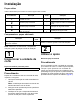 Instalação Peças soltas Utilize a tabela abaixo para verificar se todas as peças foram enviadas. Procedimento 1 2 3 4 Quantidade Descrição Utilização Unidade de corte 1 Inspecionar a unidade de corte. Nenhuma peça necessária – Utilize o apoio ao inclinar a unidade de corte. Nenhuma peça necessária – Afinação do resguardo traseiro. Bocal de lubrificação reto Anel de retenção 1 1 Instalação das peças soltas.