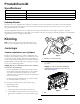 Montering Lösa delar Använd diagrammet nedan för att kontrollera att alla delar finns med. Beskrivning Tillvägagångssätt 1 2 3 4 Antal Användning Klippenhet 1 Kontrollera klippenheten. Inga delar krävs – Använda stödet när du tippar klippenheten. Inga delar krävs – Justering av det bakre skyddet. Rak smörjnippel O-ring 1 1 Montera de lösa delarna.