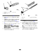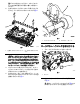 ねじ付きインサートを外すためにリー ルを固定するには 1. カッティングユニット左側のシールドボルトをゆる めて後シールドを上げる図 28。 2. 長い柄のバール9 mm x 30 cm 程度のドライバー タイプのもの。握りのついているものがよいを用 意する。バールは、トルク作業を行う側に近い側 で、リールの後ろから差し込むようにする図 28。 3. リールサポートプレートの溶接されている側から バールを入れ図 28、 注 リールのシャフトの上側と2枚のリール刃の背 中側にバールを差し込むと、リールが回転でき なくなる。 重要 リールの刃先にバールを触れると刃こぼ れなどを起こす バールを当てないように十分注 意すること。 g033206 図 26 1. ベルト 重要 カッティングユニット左側のインサートは左 ねじです。カッティングユニット右側のインサー トは右ねじです。 2. 9/16" 深穴ソケット 重要 各プーリについている溝に、ベルトのリブ がきちんとはまるように、またベルトがプーリの中 心線を通るように取り付けてください。 9.