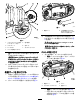 g283870 図 14 2. g033206 重要 ナットを締め付けすぎるとカバーが破損する ので注意してください。 図 13 1. ベルト ベルトカバーを取り付け穴に取り付けてボルト4 本で固定する図 15。 2. 9/16" 深穴ソケット 重要 各プーリについている溝に、ベルトのリブ がきちんとはまるように、またベルトがプーリの中 心線を通るように取り付けてください。 2. アイドラプーリを手で押し下げて、アイドラプーリ アセンブリが自由にピボット動作することを確認 する。 組み立てを完了する 1. ベルトとプーリの整列を以下の要領で点検する 注 ベルトの整列の点検は、ベルトの張りを適正 g033208 図 15 に調整した状態で行う。 駆 動 プーリの外側面にベルト整列工具をセッ トする図 14。駆動プーリと受動プーリの両方 に直定規を当て な い こと。 1. 金属カバー 2. プラスチック製カバー • 駆動プーリと受動プーリの外側面が面一であ ること誤差 0.76mm以内。 3.